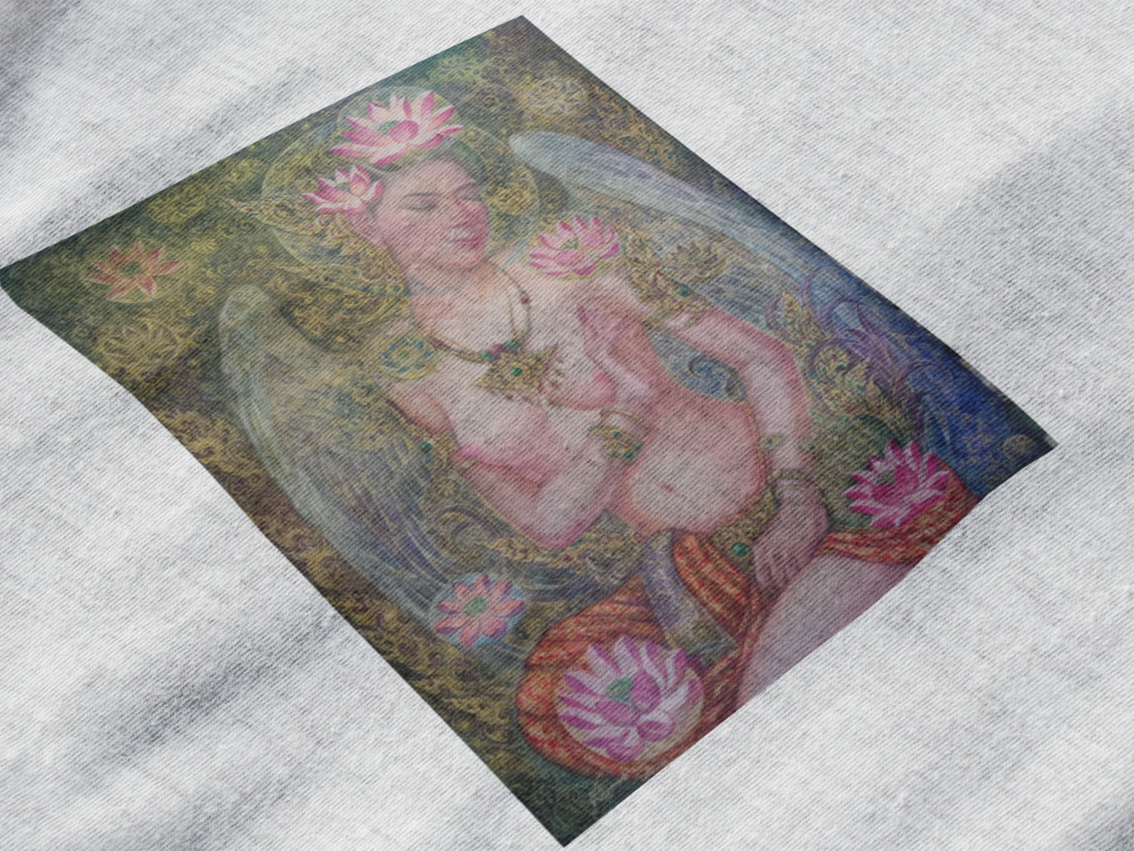 This design embodies the artist’s intention to highlight the sweetness, grace, and intricate beauty of Thai art. The soft hues and detailed patterns accentuate the serene and enchanting nature of the Kinnaree.