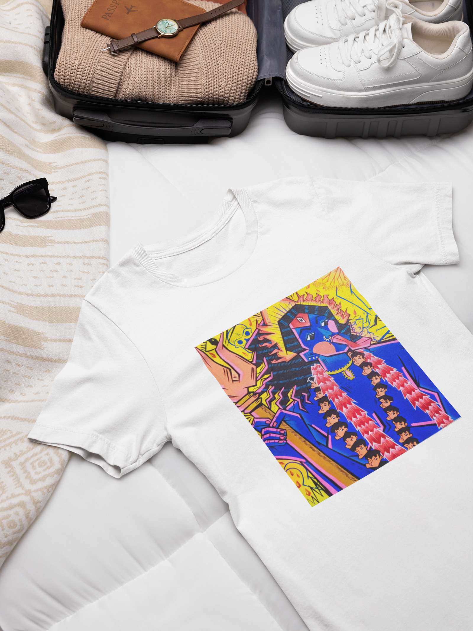 Perfect for those who appreciate cultural art with a modern twist, this shirt allows you to carry a piece of reimagined mythology wherever you go. The high-quality print on soft, comfortable fabric ensures both style and comfort for all-day wear.